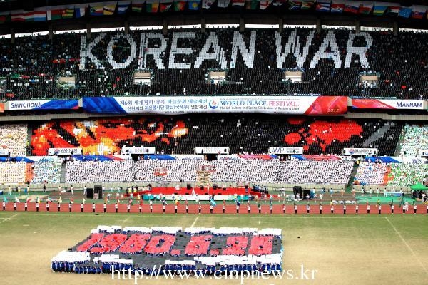 곧바로 이어진 예술단의 공연은 국경과 인종, 종교를 초월해 대한민국의 하늘아래 모여 세계평화와 한반도의 평화통일을 기원하는 힘찬 군무였다.