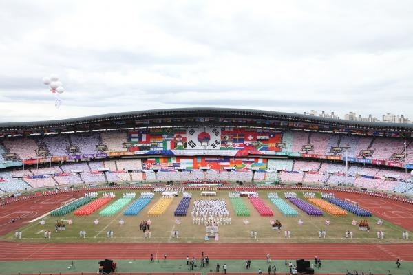 ‘세계평화· 광복’을 주제로 열린 이번 대회에서는 세계평화 발대식을 기념해 세계평화조형물이 제막돼 그 의미를 더했다. 이어 2만여 명이 동시에 연출한 카드섹션, 마스게임 퍼포먼스를 통해 한국의 권선징악 사상을 통해 세계평화와 한반도의 평화통일을 기원했다.