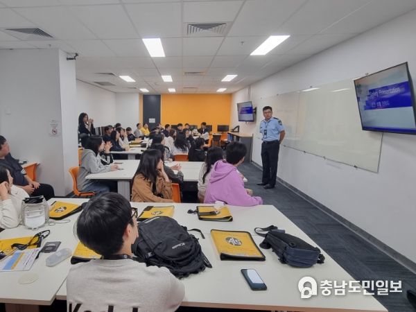 (대전=충남도민일보) 대전광역시교육청은 22일 호주 현지시간 13시 30분, 글로벌 현장학습'호주인턴십'에 참여하는 대전지역 특성화고 33명 학생들을 대상으로 호주 현지 경찰서의 지원을 받아 안전교육을 실시했다고 밝혔다.
