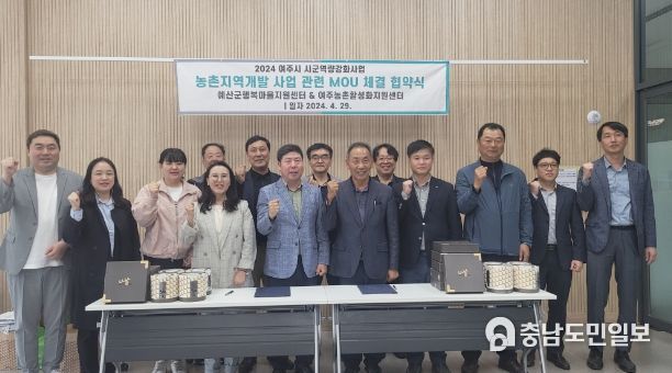 (충남도민일보 / TV / 안희진기자) 여주농촌활성화지원센터는 지난 29일 예산군 행복마을지원센터와 여주시 농업정책과 이용철과장 등 행정 및 중간지원조직 관계자 20여명이 참석한 가운데 농업농촌활성화를 위한 지역기관 간 연계 네트워크 구축과 주민 주도적 지역 공동체 발전을 위한 업무협약을 체결했다고 30일 밝혔다.