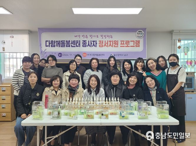 (충남도민일보(도민방송) 정연호기자) 울산 남구는 12일 무거다함께돌봄센터에서 다함께돌봄센터 종사자 20명을 대상으로 회복탄력성 강화를 위한 정서지원 프로그램을 실시했다.