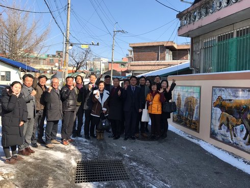논산시 화지3통 우시장 골목 도자벽화는 주민들에게 쾌적한 여가·문화공간을 제공하기 위해 노후화된 마을 담장을 지역의 역사적 문화적 소재를 중심으로 스토리텔링을 해 주민친화적 거리로 조성됐다.
