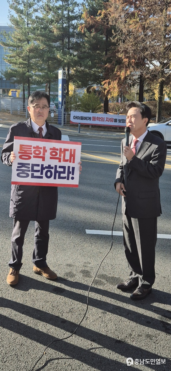 김태흠 충남도지사 집회 현장 방문, “천안시·교육청·버스업체와 해결방안 논의하겠다” 밝혀