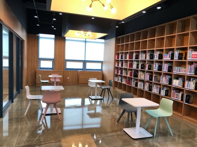 기존 아동실, 사무실, 강당으로 쓰던 1층 공간을 재구성해 아이들이 내 집처럼 편하게 책을 읽을 수 있는 다목적실과 영유아를 위한 부모를 위한 수유실, 도서관 내 작은 쉼터인 북카페로 조성하고 가족친화적 도서관으로 거듭났다.