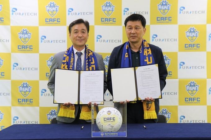 [아산=충남도민일보]정연호기자/ 충남아산프로축구단(구단주 오세현, 이하 충남아산)이 13일 퓨리텍(대표 홍승훈)과 스폰서십을 체결했다.