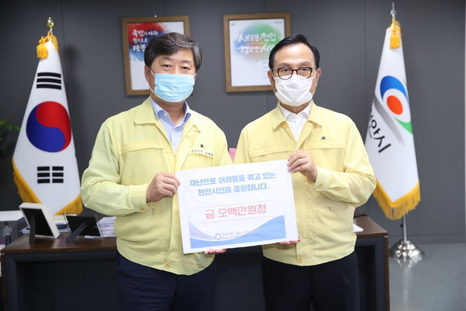 황 상임부회장은 천안이 극심한 호우피해로 특별 재난지역으로 선포되는 등 어려움을 겪고 있는 천안시민의 아픔과 어려움을 함께 극복하자며 박상돈 천안시장에게 재난재해 취약계층 등을 위해 써달라며 성금 500만원을 전달했다.