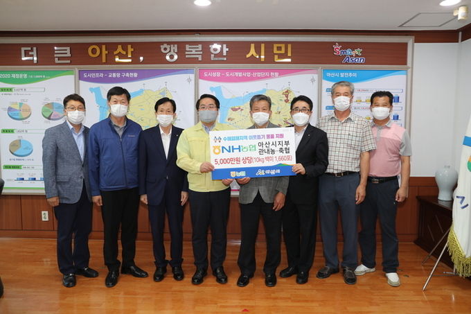 이날 전달식에는 임성동 NH농협 아산시지부장 및 관내 농·축협 조합장들이 참석했다. 기부된 물품은 각 읍면동 행정복지센터를 통해 주택 침수 등 재해로 인해 일상생활에 어려움이 있는 이재민에게 전달될 예정이다.
