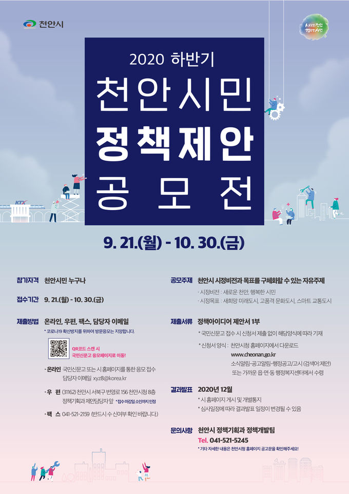 2020 하반기 천안시민 정책제안 공모전은 시민의 참신한 아이디어를 시정에 반영하고, 시민이 체감하는 공감시정을 구현하고자 마련됐다.
