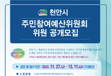 천안시, 제5기 주민참여예산위원회 위원 공개 모집