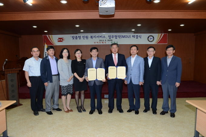 이와 관련, 부여군은 지난 26일 부여우체국에서 이용우 군수, 이순곤 우체국장 등 20여명이 참석한 가운데 맞춤형 민원.복지서비스 확충을 위한 업무협약을 체결했다.