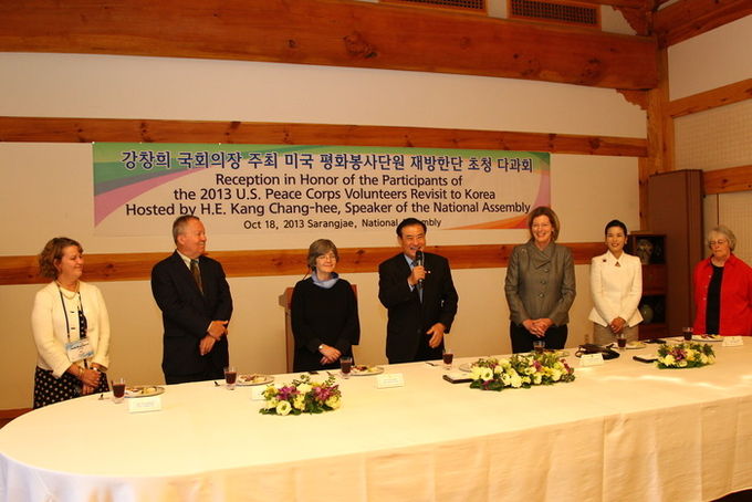 강 의장은 이날 행사에서 “평화봉사단이 한국에서 마지막 활동을 한 1981년 이후 32년 동안 한국은 많이 발전해 경제성장을 이루고, 정치적으로도 국제기관들로부터 완전한 민주주의국가라는 평가를 받고 있다”고 밝히고, “한국은 이제 KOICA 청년 2천여명이 오지에서 인류사회를 위해 땀 흘리고 있는 등 빈곤과 저개발에 시달리는 많은 지역에서 인류사회를 돕고 있다”면서, “한국국민은 여러분이 걸고 계시는 기대 이상으로 인류사회의 행복에 기여할 것”이라고 강조했다.