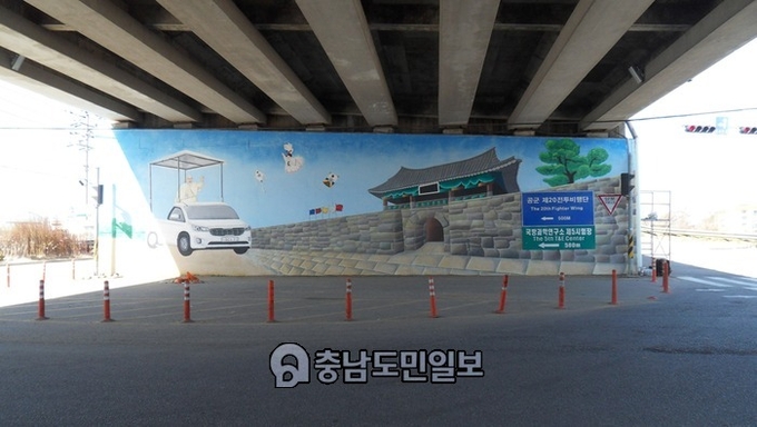 서산시 해미면 중심을 가로지르는 다리(휴암교)에 프란치스코 교황 방문을 기념하는 벽화가 그려졌다.