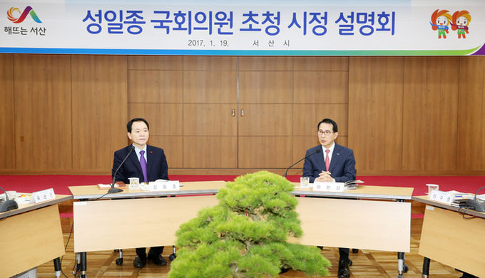 이완섭 서산시장은 “성일종 국회의원의 도움으로 지난해보다 8.6%가 증가한 5,553억원의 외부재원을 확보할 수 있었다.” 며 “지역발전을 위해 이번에 건의한 사업들이 조속히 추진될 수 있도록 적극적인 협조를 바란다.”고 말했다.