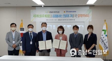 (충남=충남도민일보) 충청남도사회서비스원은, 24일 사회서비스 종사자의 복리증진과 공공 돌봄 서비스 전달 체계 구축을 위해 한국사회복지공제회와 업무협약을 체결했다고 밝혔다.