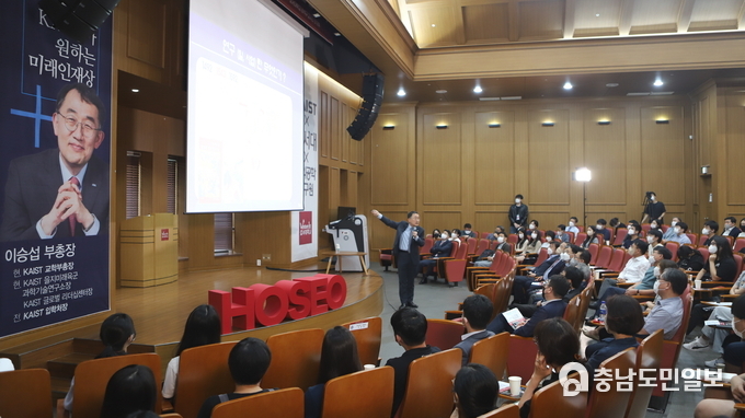 [아산=충남도민일보] 호서대학교(총장 김대현)는 25일 아산캠퍼스 강석규교육관에서 지역 시민을 위한 제2기 디지털 창의 토크콘서트를 개막하고, 첫 특강자로 카이스트 이승섭 교학부총장을 초청했다.