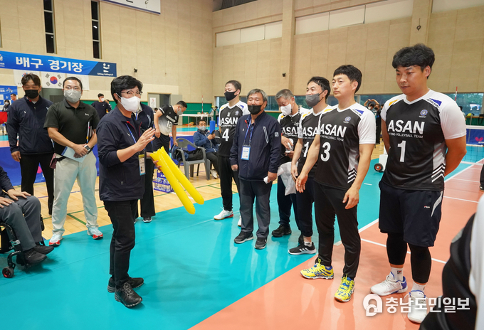 [아산=충남도민일보] 아산시의회(의장 김희영)는 지난 22일 시의원, 의회사무국 직원들과 함께 제28회 충남장애인체육대회 개최지인 당진시를 방문하여 아산시 선수단을 격려했다.