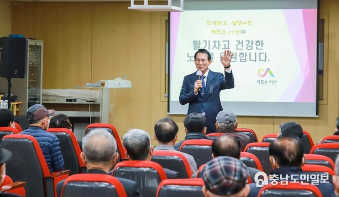 4일 시에 따르면 ‘도약하고 살맛나는 해뜨는 서산이 활기차고 건강한 노후를 응원합니다’라는 주제로 열린 이번 특강은 노인복지에 깊은 관심을 갖고 있는 이 시장이 민선8기 시정방침과 다양한 노인복지시책, 주요현안 사업을 어르신들게 설명하고 함께 소통하기 위해 마련됐다.