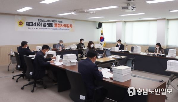 (충남=충남도민일보) 충남도의회 기획경제위원회는 10일 아산 충청남도경제진흥원에서 행정사무감사를 실시하고, 도민 관점에서 사업을 추진하고 어려운 기업이나 소상공인이 고루 혜택을 받을 수 있는 촘촘한 규정 마련을 촉구했다.