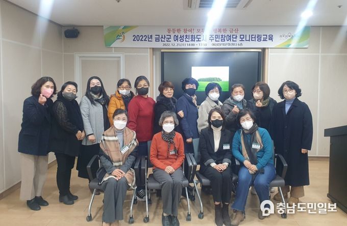 (금산=충남도민일보) 금산군은 지난 21일 금산읍 청산회관 여성창의문화센터에서 여성친화도시 주민참여단 모니터링 교육을 개최했다.