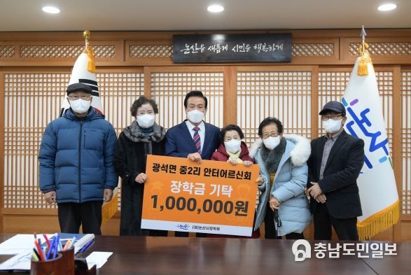 안터어르신회 회원들은 해마다 성금을 모아 이웃돕기 사업 등에 보태왔으며, 올해는 지역인재 양성에 이바지하겠다는 뜻을 담아 논산시장학회에 전했다.