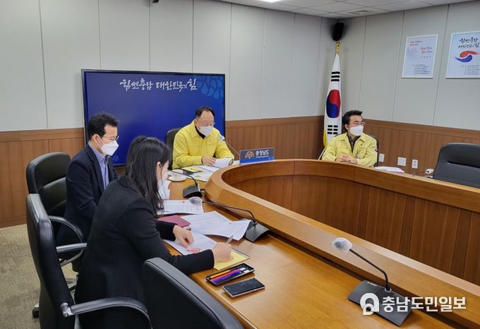 (충남도민일보) 안재수 충청남도 기후환경국장이 7일 영상회의에서 시・군별 고농도 미세먼지 저감조치 발령에 따른 상황 및 계획을 점검하고 도민 건강피해 최소화를 위해 노력해 줄 것을 당부하고 있다.