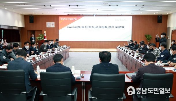 도는 12일 시군 및 한국국토정보공사(LX) 대전세종충남본부 관계자 등이 참석한 가운데, ‘2023년도 토지행정 운영계획 공유토론회’를 개최했다.