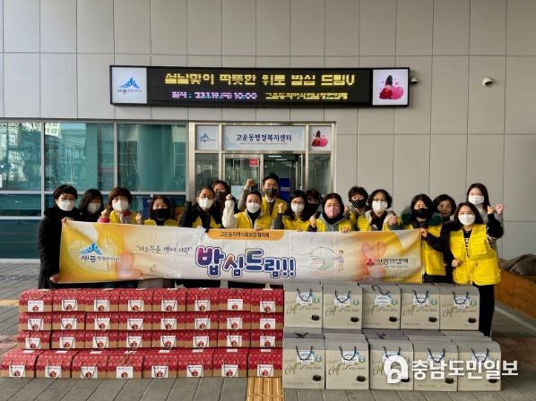 (세종=충남도민일보) 세종특별자치시 고운동 지역사회보장협의체(공동위원장 천화상·안정순)가 설 명절을 앞두고 19일 관내 취약계층 40가구에 떡국떡과 김 세트 40개를 전달했다.