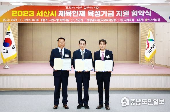 (서산=충남도민일보) 충남 서산시는 22일 서산시청 대회의실에서 충청남도서산교육지원청, 서산시체육회와 우수 체육인재 발굴·육성을 위한 ‘2023년 체육인재육성사업 업무 협약식’을 개최했다.