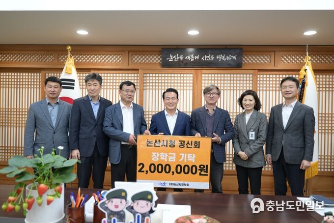 시는 지난 24일 논산시청 공신회에서 2백만 원의 장학금을 기탁했다고 밝혔다. 공신회는 지난 2000년 만들어진 1968년(무신년)생 공직자들의 소모임이다. 김재희 공신회장은 지역사회에 공헌할 수 있는 일에 동참하자는 회원들의 뜻을 모아 장학금 기탁을 결정했다고 전했다.