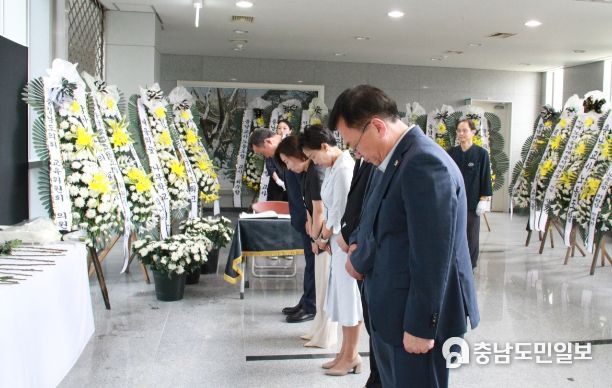 (충남=충남도민일보) 충남도의회 교육위원회는 지난 25일 충남교육연구정보원 1층에 마련된 서울 서이초등학교 교사 충남 추모분향소를 찾아 고인의 명복을 빌었다.