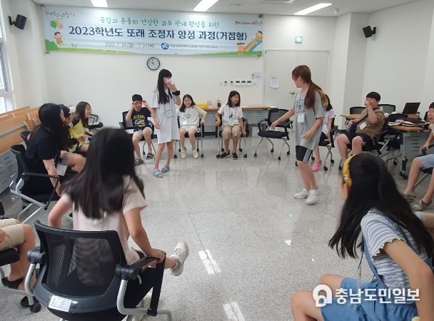 (세종=충남도민일보) 세종특별자치시교육청은 7월 24일부터 27일까지 사회적경제공동체 1층 열린교육장에서 학생 주도형 관계중심 생활교육의 일환으로 ‘또래 조정자 양성 과정(거점형)’을 운영했다.