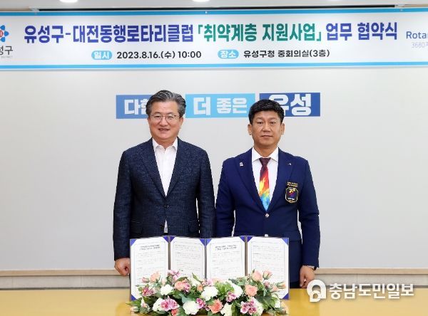 (충남도민일보) 대전 유성구는 16일 대전동행로타리클럽과 저소득 취약계층을 지원하기 위한 업무협약을 체결했다고 밝혔다.