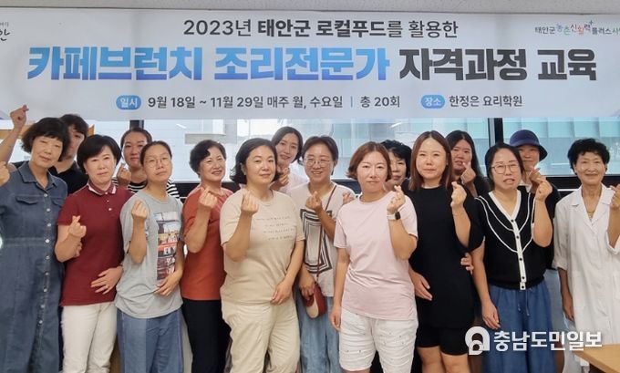 군은 지난 18일 태안읍 내 한 요리학원에서 교육생 30명 등이 참석한 가운데 ‘태안 로컬푸드를 활용한 카페브런치 조리전문가 자격과정 개강식’을 갖고 10주 간의 교육에 돌입했다고 밝혔다.