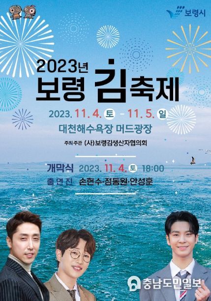 (충남도민일보) 보령시는 대표 특산품인 조미김 산업의 활성화를 위해 11월 4일부터 5일까지 양일간 대천해수욕장 머드광장 일원에서 ‘2023 보령 김 축제’를 개최한다.