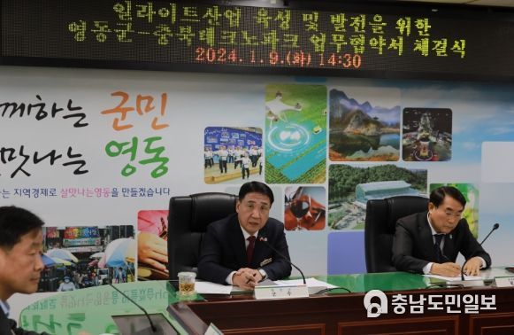 (충남도민일보 / 김천호기자) 충북 영동군과 (재)충북테크노파크가 일라이트 산업 육성 및 발전을 위한 업무협약을 맺었다.