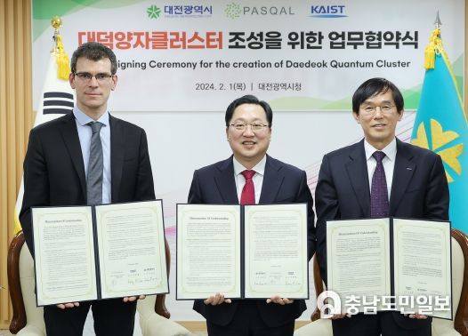 (충남도민일보 / 정연호기자) 대전시는 1일 프랑스에 본사를 둔 글로벌 양자컴퓨팅 기업 파스칼(PASQAL), KAIST와 업무협약을 맺고, 양자과학기술 발전과 대덕양자클러스터 조성을 위한 공동 협력사업을 추진하기로 했다.