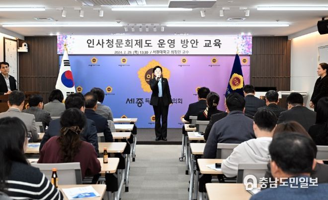 (충남도민일보 / TV / 정연호기자) 세종특별자치시의회는 29일 의원 및 의회사무처 직원을 대상으로 인사청문회 운영 방안에 대하여 교육을 실시했다.