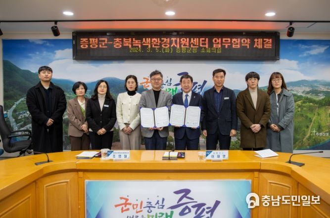 (충남도민일보 / TV / 정호영기자) 충북 증평군은 5일 군청 소회의실에서 충북녹색환경지원센터와 환경분야 협력사업 업무협약을 체결했다.