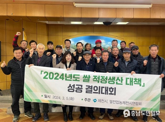 (충남도민일보 / TV / 정호영기자) 제천시와 쌀전업농제천시연합회가 최근 쌀 적정생산 대책 추진을 위한 성공 결의대회를 개최했다.