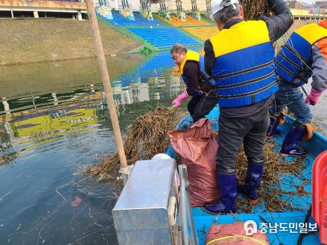 공사와 부유물을 제거하기로 협의하고 제천부터 선박을 운반해 가져오는 등 필요 장비를 즉시 동원해 신속하게 청소를 시행했다.