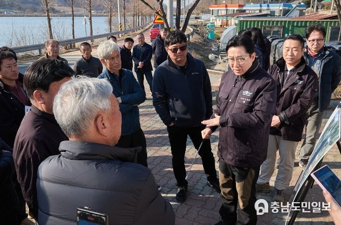 (충남도민일보 / TV / 정연호기자) 박경귀 아산시장이 21일 둔포면 봉재저수지와 염치읍 염치저수지를 방문해 민선 8기 공약사업인 ‘권역별 저수지 수변 생태공원 조성사업’ 추진 상황을 점검했다.