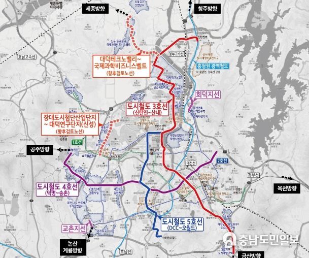 (충남도민일보 / TV / 정연호기자) 올해 차량 발주 및 착공을 앞둔 도시철도 2호선 건설과 함께 대전의 도시경쟁력 제고와 대중교통 인프라 확충을 위한 도시철도 3ㆍ4ㆍ5호선에 대한 구체적 밑그림이 그려졌다.