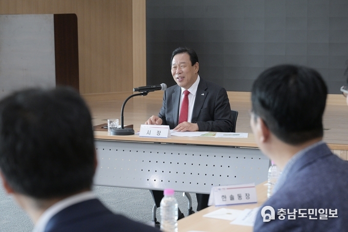 (충남도민일보 / TV / 정연호기자) 최민호 세종특별자치시장이 16일 봄꽃이 개화하는 4월을 맞아 국립세종수목원 연구동 대강당에서 읍면동장 회의를 열었다.