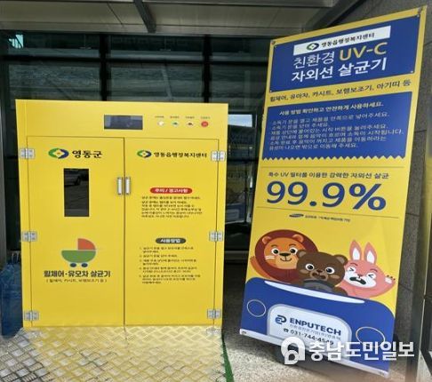 (충남도민일보 / TV / 김천호기자) 충북 영동군은 영동읍사무소에 전동휠체어 및 유모차 살균소독기를 설치해 운영한다고 29일 밝혔다.