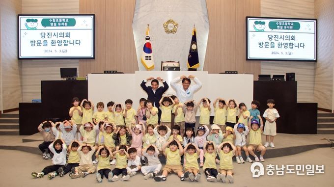 (충남도민일보 / TV / 정연호기자) 당진시 수청초등학교 병설 유치원생들은 지난 3일 당진시의회를 방문해 김덕주 시의장과 만남을 갖고 본회의장과 의회도서관 등 시의회 시설을 견학했다.