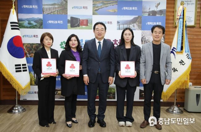 이날 인증 현판을 받은 착한가게는 △95호 이지헤어(염재은) △96호 ㈜대광(남정만) △97호 알파옥천점(박미숙) △98호 북경반점(최무진) △99호 유화아뜰리에(유은하) △100호 라인떡방(곽재경) 6개소다.