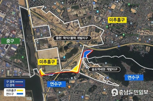 한편 인천시는 앞서 2022년 1월 지방자치법 개정 이후 관할구역 경계변경 조정절차를 활용한 전국 지자체 최초사례로 숭의운동장도시개발사업지구(중구와 미추홀구)의 경계조정에 성공한 바 있다.