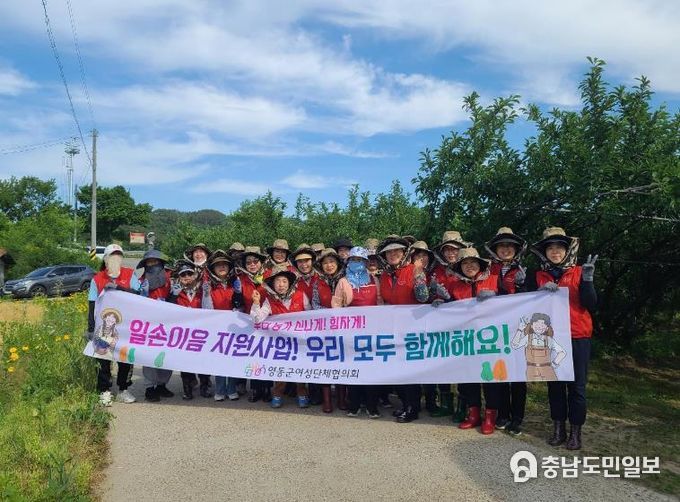 (충남도민일보 / TV / 김천호기자) 충북 영동군 여성단체협의회와 감잎회(영동군청 관·과·소·읍면장 이상 간부공무원 부인 모임)는 지난 2일 양강면 두평리 농가를 방문해 일손이음 지원사업을 추진했다.