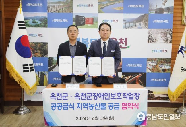 (충남도민일보 / TV / 김천호기자) 옥천군은 3일 옥천군 장애인보호작업장과 공공급식 지역농산물 공급 협약을 했다.