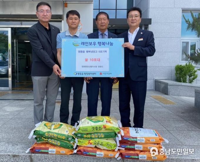 (충남도민일보 / TV / 김천호기자) 영동중앙신협 정환인 이사장이 지난 10일 영동읍을 찾아 행복냉장고 사업을 위해 사용해 달라며 쌀(10kg) 10포를 기탁했다.